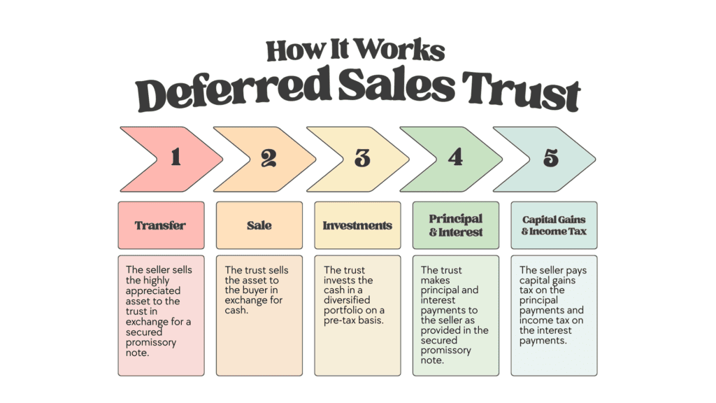A deferred sales trust is a tax deferral strategy that allows sellers of highly appreciated assets (like a closely-held businesses) to defer capital gains tax over several years.